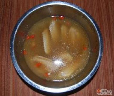 1.用卤料包煮一定份量的卤水汤,香料味不用重,淡淡的就可以.再说鸡汤粒跟枸杞和鱼露,汤水要咸点为好.调好味之后放凉备用