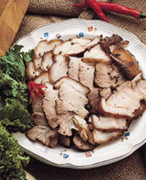 (3)猪蹄膀烧好,待完全冷却后,切薄片排盘即可。