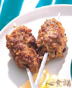 (2)将肉泥放在铁串上固定,再用180℃左右的温度,烘烤约20分钟即可。
