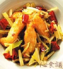 甜不辣200公克,干辣椒30公克,葱2根,花椒5公克,小黄瓜1条,油少许,盐1/4茶匙,细砂糖1茶匙,蚝油1/2茶匙