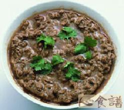 (3)牛绞肉加入腌料,平铺在蒸过的蛋上,再放入锅中蒸2分钟即可上桌。