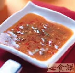 花生粉1/2小匙,辣椒粉少许,韭菜末1大匙,白糖1/2小匙,炼乳1大匙,辣油1小匙,酱油1/2小匙