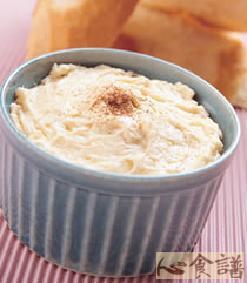 (2)苹果去皮后切细丁,与糖粉、肉桂粉、挤好的柠檬汁、白兰地及软化的奶油一起混合搅拌均匀即可。