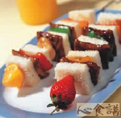 (4)依个人喜好,将土司片与各式食材穿插串起即可。