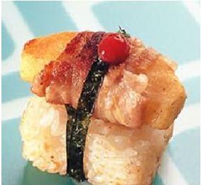 厚蛋烧2、厚蛋烧握寿司、烧仙草、蜜汁烤鸡腿、帆立贝味噌美乃滋烧