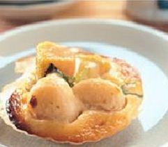 3.将帆立贝、南瓜、鸭儿芹排入贝壳中,再淋上作法1的酱料,放入烤箱中,用200℃烤至略带焦状即可。