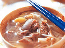 3. 取锅注入水煮开,放入当归、大蒜、作法2和作法3以及酒,一起用大火煮开后改为小火,炖煮约2小时,稍加调味即可。