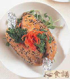 4.将作法2的鸡腿翻面后,再刷一次腌料的汁,以强微波加热4分钟,排入盘中即可。