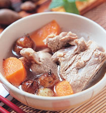 2.将作法1中的所有材料与水、酒一同置入锅中,先以大火煮至沸腾,再转小火煮30分钟即可。