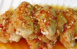 3、蒜茸中加入盐、青柠檬汁、生抽、辣椒酱调成汁,浇在鸡翅上,或沾汁食用皆可。