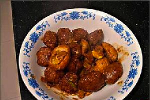 五、鸡蛋,丸子过油。鸡蛋皮金黄,皮脆。丸子也变金黄色,7成熟。捞出待用。