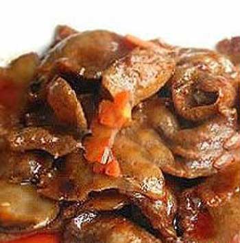 (4)起锅放白糖,下牛头肉焖10分钟,肉装盘,鸡汤用水勾芡,淋香油后浇在牛头肉上即成。