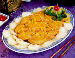 芝麻酱炖鸡、焖酿鳝卷、烧石岐乳鸽、吊烧鸡、豆瓣海参