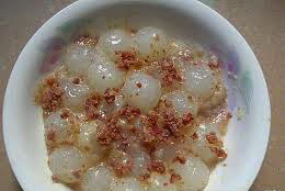 4、放入碗中,加入汤或水(如果加的是水,就要放一咖啡匙鸡精,芡汁中就不用放味精了),上蒸锅蒸20分钟以上。