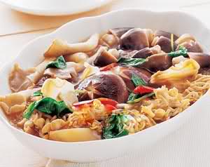 主料:鲜蘑150克,金针菇适量,香菇适量,草菇12个,榨菜片2大匙,罗勒适量,辣椒段1大匙(去子),粉丝1把,