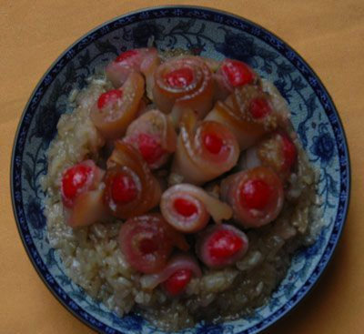 五花肉,糯米,豆沙,花生,大枣,冰糖葫芦,猪油,红糖,盐,料酒,姜片
