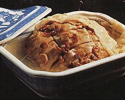 3、炒锅加清汤1250克,再将蒸盘内的原汁滗入锅内,旺火烧开,加味精、胡椒粉、浇入汤盆内即成。同时与姜汁味碟一起上桌。