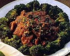 主料:牛肉1斤,绿花菜1棵,小苏打粉1小匙太白粉,水各3大匙