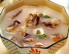 2.锅中加油,放入河鳗段略煎,加葱段、姜片爆锅,烹入料酒,加鲜汤、豆腐块炖至汤汁浓白,加精盐、味精、胡椒粉调味,撒香菜段,淋香油,出锅即可。