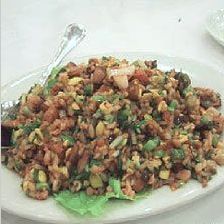 1、肉切小丁,刀背轻拍,拌入黄酒、精盐、湿淀粉,拍上干淀粉,油烧至六成热,将肉逐块炸一下,捞起沥油,油再烧热,再次略炸捞起,待油温八成热时,再炸至脆。