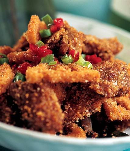 软炸排骨、炸叉烧肉、炖二筋、煎五香里脊肉