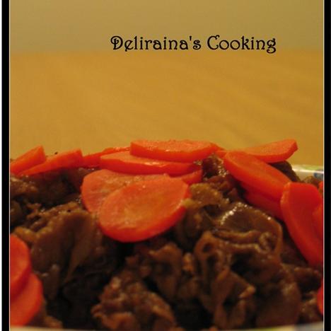肥牛肉片:1kg,洋葱:1个;胡萝卜:2根,盐:2.5茶匙(12.5g);糖:3汤匙(45g),酱油:2汤匙(30ml);红酒:2汤匙(30ml)