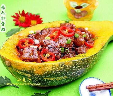 第一种:家常菜菜谱微波南瓜排骨船做法