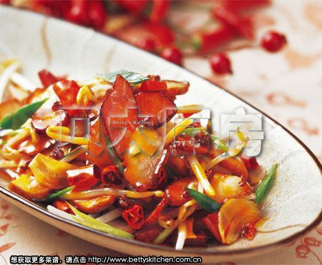 第三种:家常菜菜谱爆炒烟熏干腊肠做法