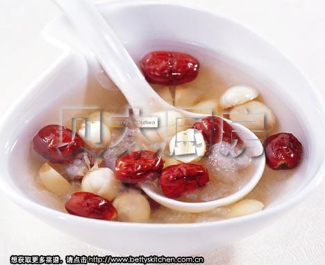 (此用量可供2-3人食用),莲子 20g(约15粒),干红枣 8粒,雪蛤 10g,片糖 20g,水 250ml