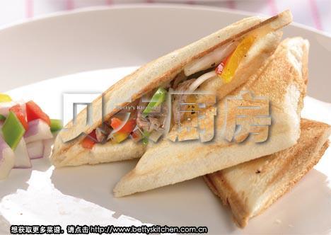 第二种:家常菜菜谱甜椒牛肉三明治做法
