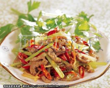 第一种:家常菜菜谱香芹泡椒牛肉丝做法
