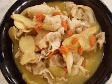 材料:山猪肉300克,老姜60克,枸杞30克