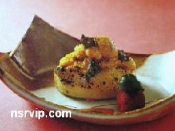 (7)重复在海老芋上涂上海胆酱,烧烤至金黄色,配以海苔碎片作调味。