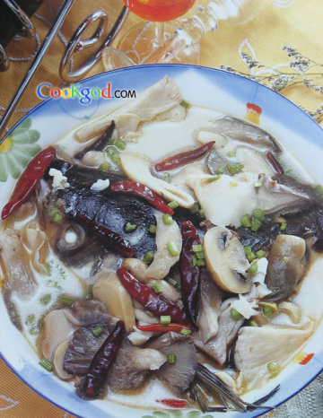 第一种:家常菜菜谱三菇炖鱼头做法