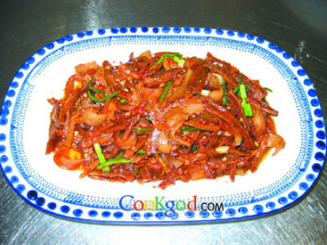 2.将猪肥瘦肉切成细丝(5厘米长);