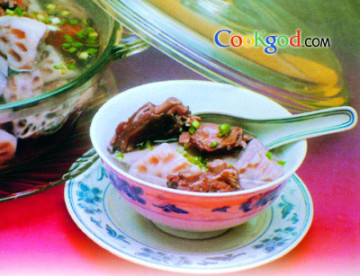 主料:腊排骨250克,湖藕500克。调料:猪油10克,盐2克,味精、胡椒粉各2克,葱花10克,食用碱1克,姜块7克,葱结10克。