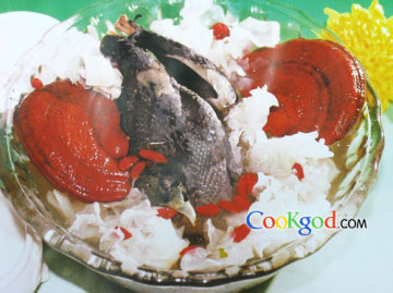 第一种:家常菜菜谱雪耳灵芝炖乌鸡做法