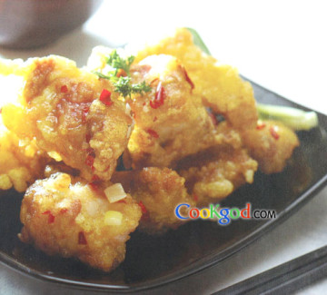 1、将肋排剁成拇指大小的方块,沥净血水,加鸡蛋、奶粉、吉士粉上浆备用。