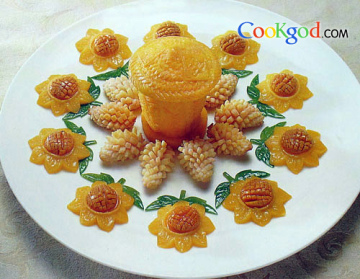 2、将南瓜雕刻成向日葵形状备用。