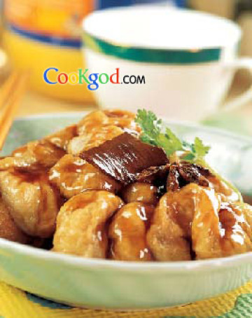 软糯可口,香味浓郁。面筋必须炸透,否则口感不好。