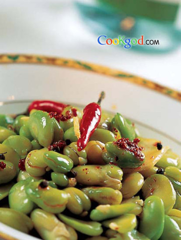 咸甜适口,鲜麻味美。用清水将蚕豆泡开后再炒,吃起来更有韧性。
