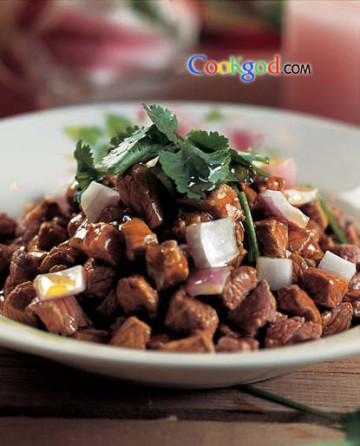 第一种:家常菜菜谱芫爆牛肉做法