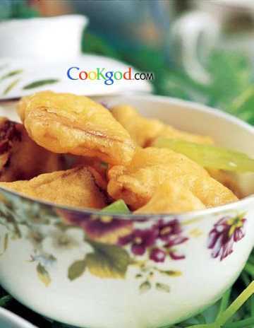 皮脆肉烂,香酥可口。挂糊时如果挂不上,可先沥干肉片上的水,拍些干粉后再挂糊。