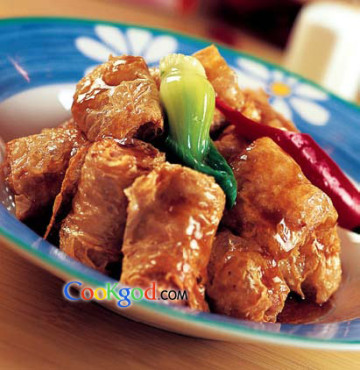 第三种:家常菜菜谱腐皮肉卷做法