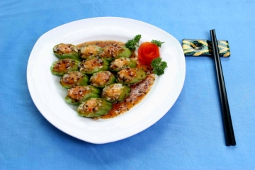 凉瓜600g 虾胶300g 豆豉10g 盐5g 鸡精5g 白胡椒粉2g