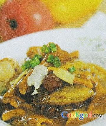 将鸡油菌、小鱼换成马哈鱼,称马哈鱼红烧肉。