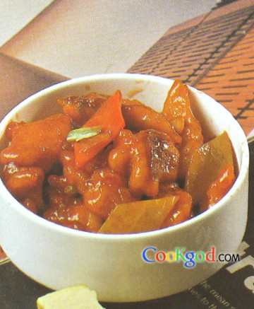 3、炒锅上火烧热,加少许底油,用葱、姜、蒜炝锅,下入元葱瓣,胡萝卜片煸炒,烹绍酒,再下入炸好的鱼段,泼入对好的“芡汁”,翻炒均匀,淋明油,出锅装盘即可。
