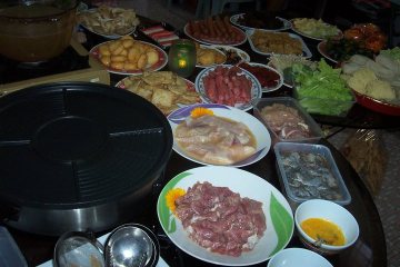 3、接下来只是把烤炉和各种待烤的食材装盘摆在桌上。