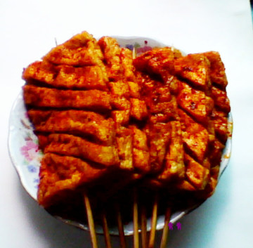 第一种:美食美味的口口香----微波炉烤豆腐串做法