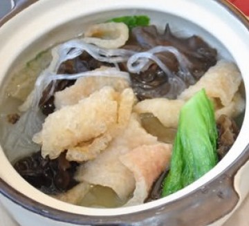 第一种:美食美味的响皮木耳粉丝芥菜煲做法